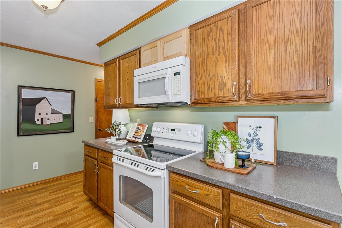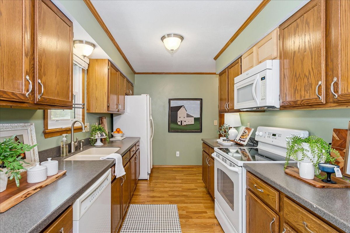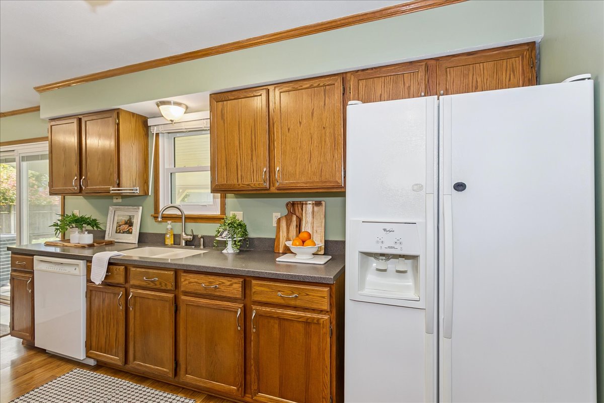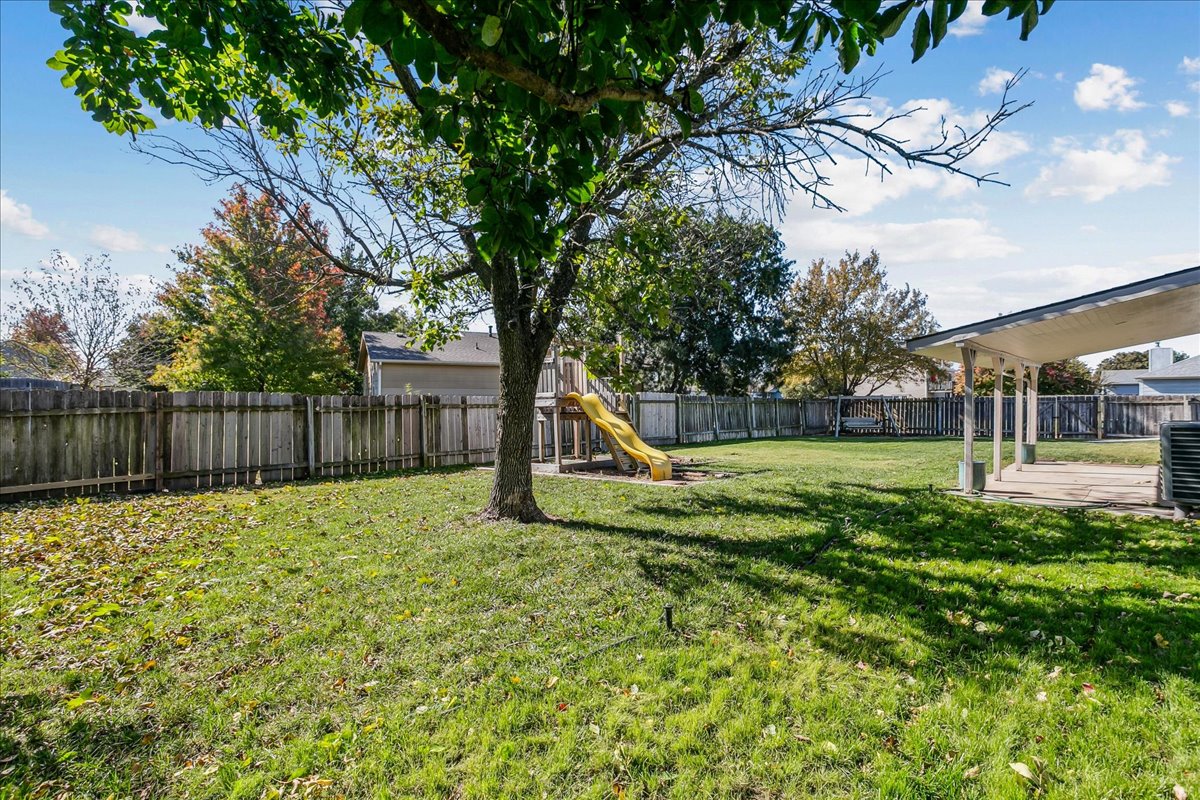 Welcome home to this well-maintained ranch located in the desirable Goddard School District! This move-in ready property offers plenty of space for the whole family, with a total of 4 bedrooms, 3 full bathrooms, plus an additional bonus room in the finished basement — perfect for a home office or guest space. This home features an inviting layout, cool color pallet, and spacious living area as you enter the home. The kitchen and dining area flow seamlessly together and there is access from this room to the large covered patio. The primary suite offers a private retreat with its own full bath, while the finished basement adds valuable living space for movie nights, hobbies, or hosting friends. Situated on a corner lot, this oversized fully fenced yard has plenty of space for the kids and a storage shed that stays with the property! This family friendly neighborhood allows easy access to schools, parks, and shopping. Contact us today to arrange for a showing!