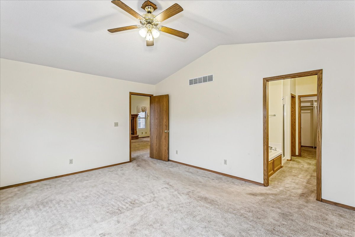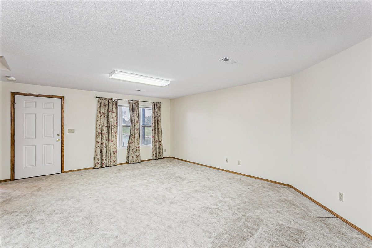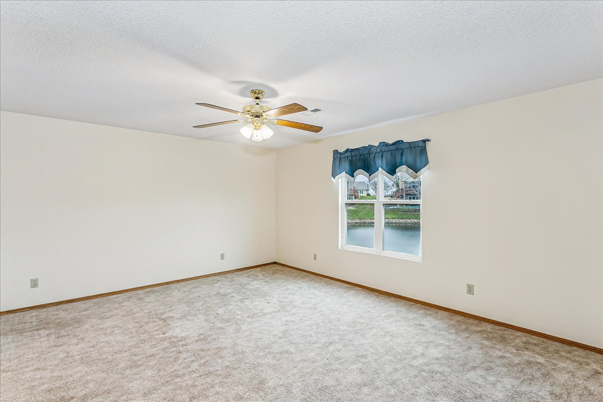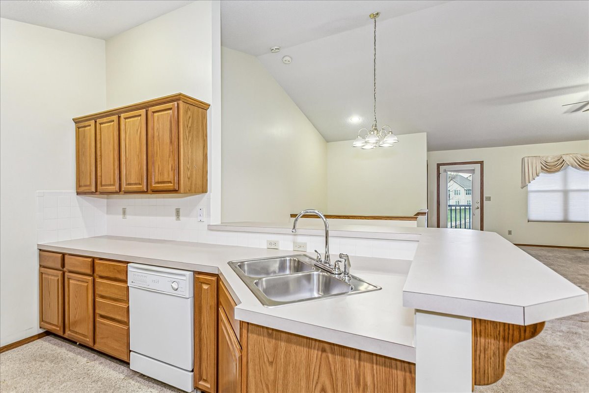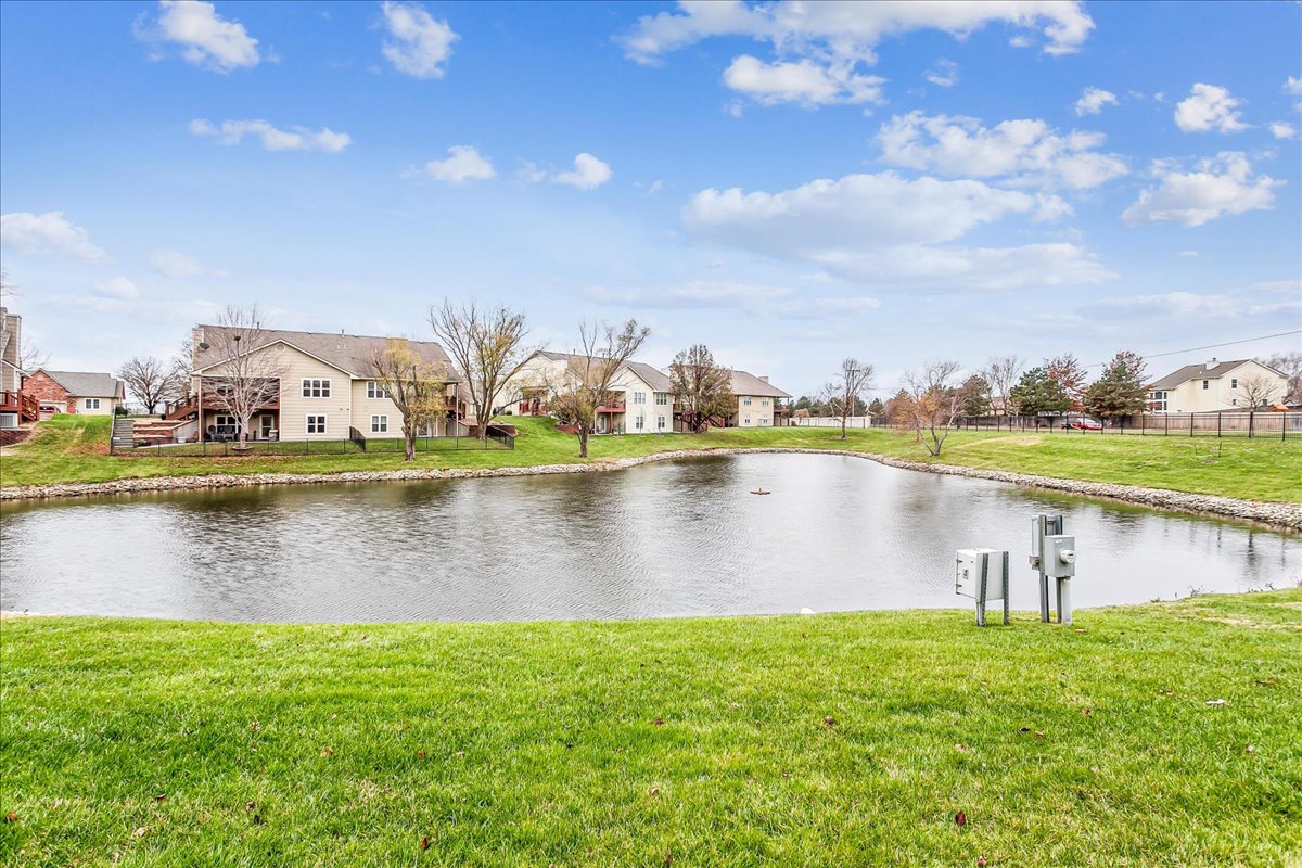 Step into this low-maintenance home featuring beautiful pond views and a layout designed for effortless living! As you enter through the front door the main living area features vaulted ceilings and windows that showcase serene water views, as well as access to the spacious covered deck. The open-concept kitchen includes an eat-in bar, dishwasher, range, and stainless steel refrigerator that stay with the home. Just off the kitchen is a cozy dining alcove and a hallway leading to the guest bedroom and full hall bath. The primary bedroom, privately situated off the living room, also overlooks the pond. Its en-suite bathroom features a double-sink vanity, separate soaking tub, walk-in shower, and private water closet, along with a spacious walk-in closet. The walk-out basement offers even more living space, including a large family room, an additional bedroom, a full bathroom, and an expansive storage area with built-in shelving. Step outside to the covered patio and enjoy even more lake views and peaceful outdoor living. Neighborhood HOA dues cover trash service, lawn maintenance, and snow removal, making this home an easy choice for those seeking comfort and convenience. This home is located in a sought after west-side neighborhood and is close to shopping, restaurants and Sedgwick County Park. NOTE: All wood decking & stairs will be refreshed once temperatures allow!! New roof in November of 2025.