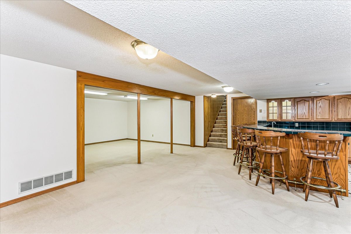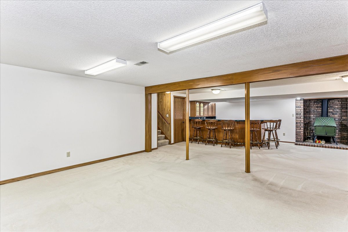This well-cared-for traditional home offers exceptional space, comfort, and versatility. With 5 bedrooms, 3.5 bathrooms, and an additional bonus room in the basement, there’s plenty of room for everyone! The main floor features two inviting living spaces, a convenient laundry room with an attached half bath, and a bright, all-seasons sunroom just off the kitchen. The kitchen is beautifully appointed with custom oak cabinetry, granite countertops, and stainless steel appliances that stay with the home. The finished basement expands your living and entertaining options with a huge wet bar, a cozy rec room featuring a wood burning stove, and two additional bedrooms—each offering built-ins for added storage and charm. Outside, the backyard backs to an open field, providing peaceful privacy and an inviting outdoor setting. Thoughtfully maintained and full of character, this home is ready for its next owners to enjoy small town living at its finest!