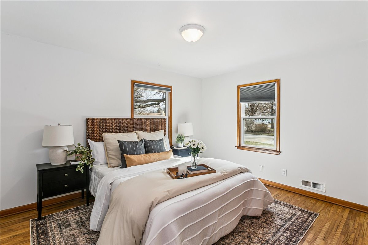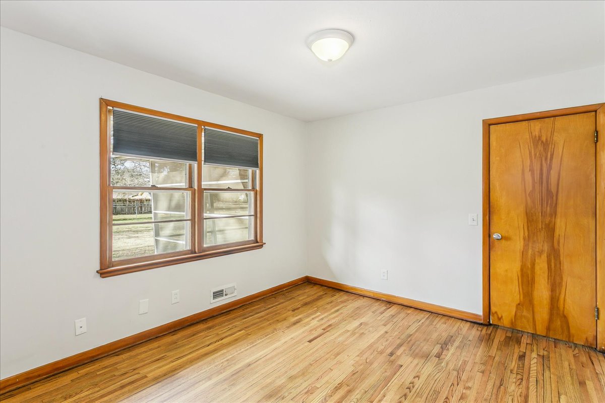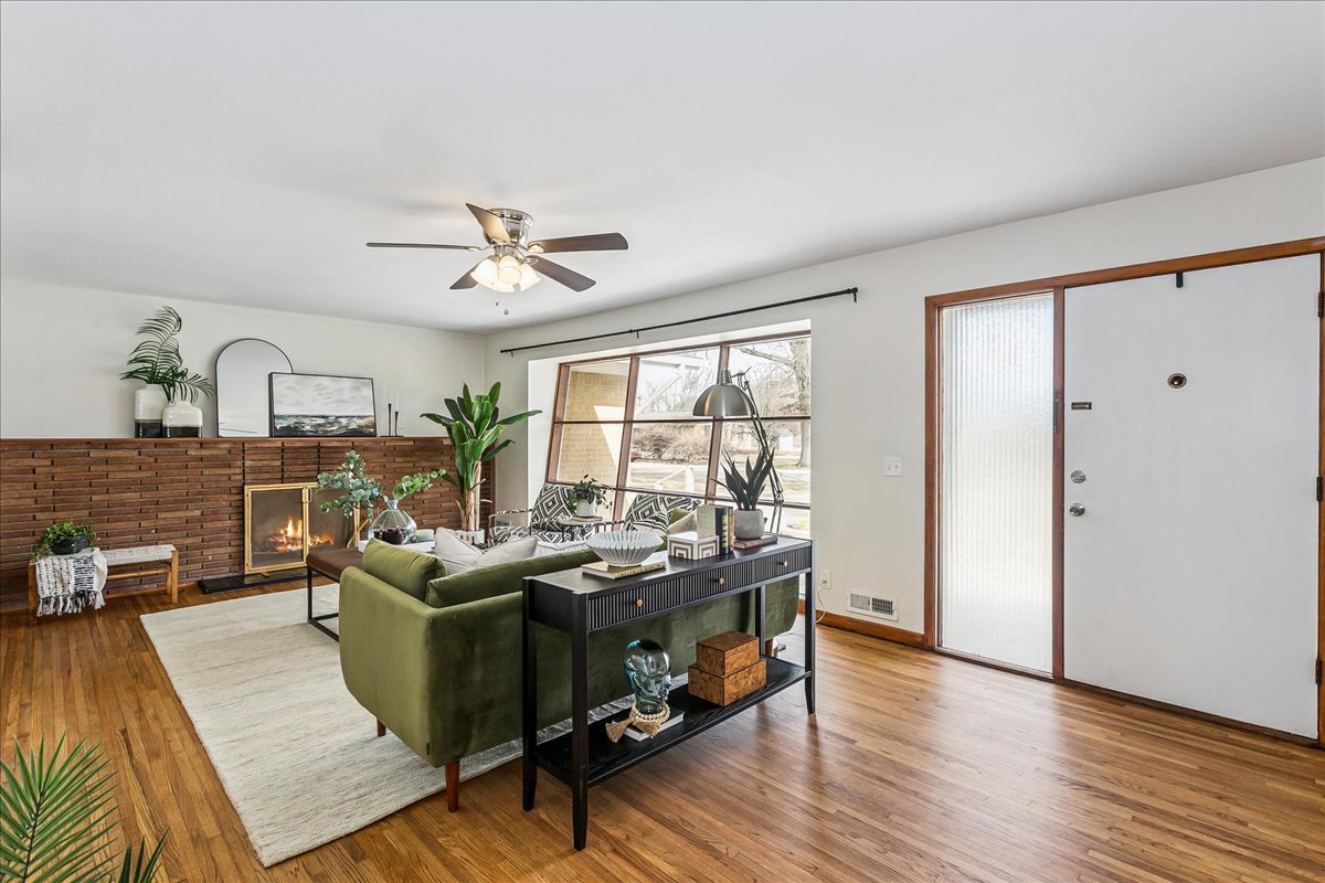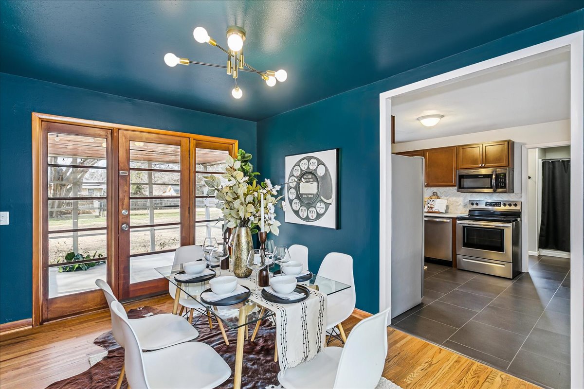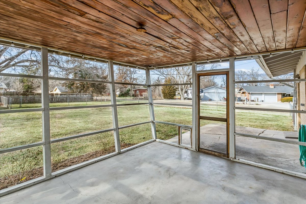 If you love Mid Century Modern, you’ll love this home! Welcome to the perfect blend of old and new with this three bedroom, two-bath home located on nearly a half acre corner lot in North Wichita! Step inside to a bright living room featuring a large picture window that fills the space with natural light, a wood-burning fireplace and beautifully refinished hardwood floors. Just beyond the living area you will step into the formal dining room with a moody vibe and modern light fixture. The kitchen offers newer luxury tile flooring, quartz countertops, an oversized sink, and stainless steel appliances. Off the kitchen, you’ll find a spacious full bathroom with waterproof LVP and laundry hookups with a door leading to the back patio. The opposite side of the home features three comfortable bedrooms (some with new windows) and a full hall bath with a new mid mod vanity. A door off the dining room leads to a cozy screened-in patio that opens to the spacious fenced backyard complete with mature trees, a large storage shed, concrete fire pit, irrigation well and sprinkler system. There is plenty of room to add a shop and/or detached garage with direct access from the adjoining street. Conveniently located on a quiet dead end street near shopping, dining, and I-235 for quick access to everything Wichita has to offer. THIS HOME IS MOVE-IN READY!