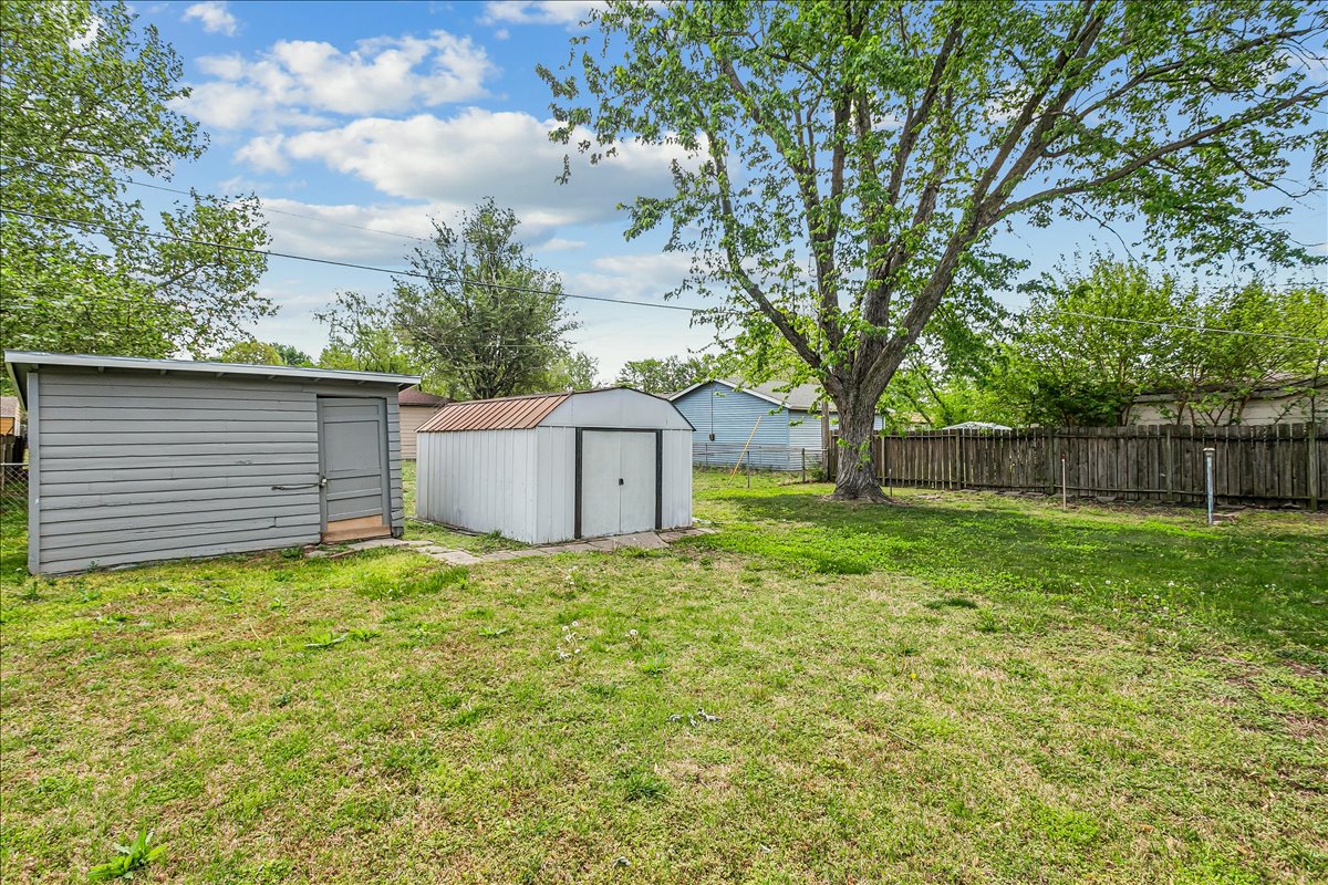 Welcome home to this darling three bedroom, one bath ranch located in the Southwest Village neighborhood. Inside you’ll find a nice floor plan featuring a welcoming living area with original hard wood floors that flows seamlessly into the kitchen and dining rooms. Adjacent to the kitchen is laundry area, plus a secondary family room and/or flex space. Down the hall are three bedrooms and a full bathroom. The backyard offers a large covered patio overlooking mature trees and a fenced yard. There are two storage sheds providing plenty of room for tools, equipment, or outdoor items. Also, the HVAC system is only one year old! Conveniently located near I-235, this home makes commuting to all areas of Wichita simple and efficient. Don’t miss this great opportunity, schedule your showing today! Note: Seller is selling AS IS.